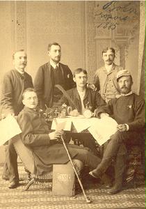 A Boksz nevű élclap szerkesztői, jobb oldalon ül Albert Károly